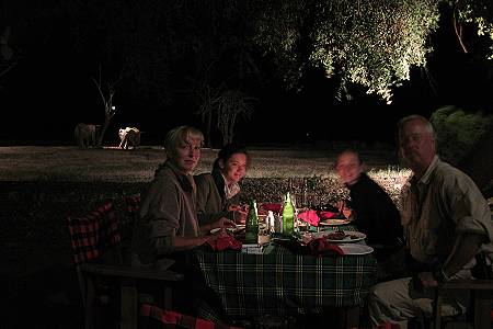 the evening hours many wild animals can be observed at the floodlit waterhole. Elephants are always around, very often Lions,